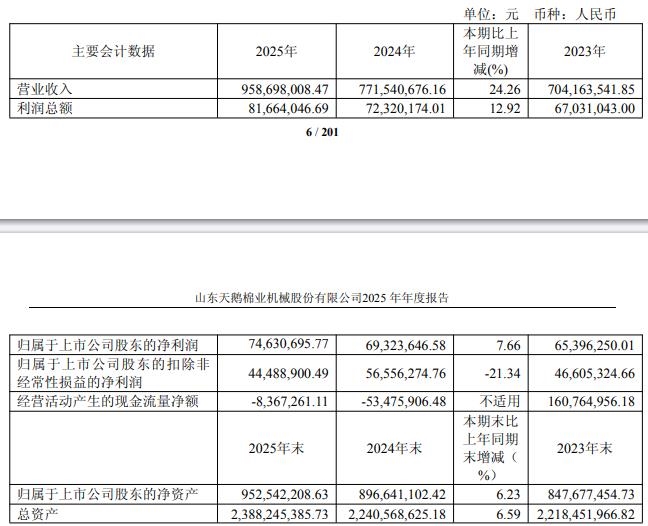 天鵝股份發(fā)布2025年年度報(bào)告稱(chēng),公司2025年度實(shí)現(xiàn)營(yíng)業(yè)收入約9.59億元,同比增長(zhǎng)24.26%;歸屬于上市公司股東的凈利潤(rùn)約7463.07萬(wàn)元,同比增長(zhǎng)7.66%。