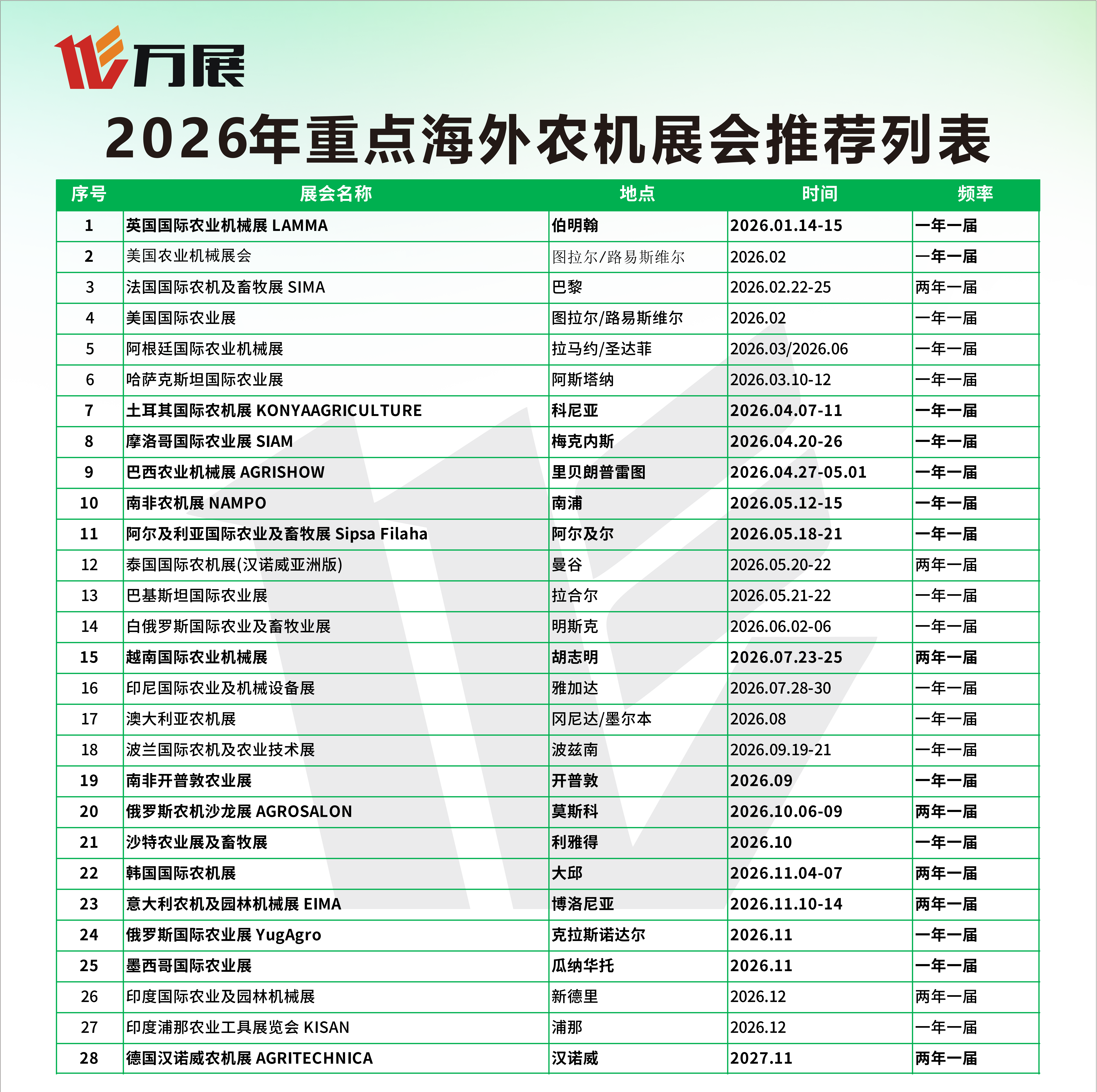 展會(huì)預(yù)告丨2026越南農(nóng)機(jī)展邀您參加(附出國(guó)展一覽表)
